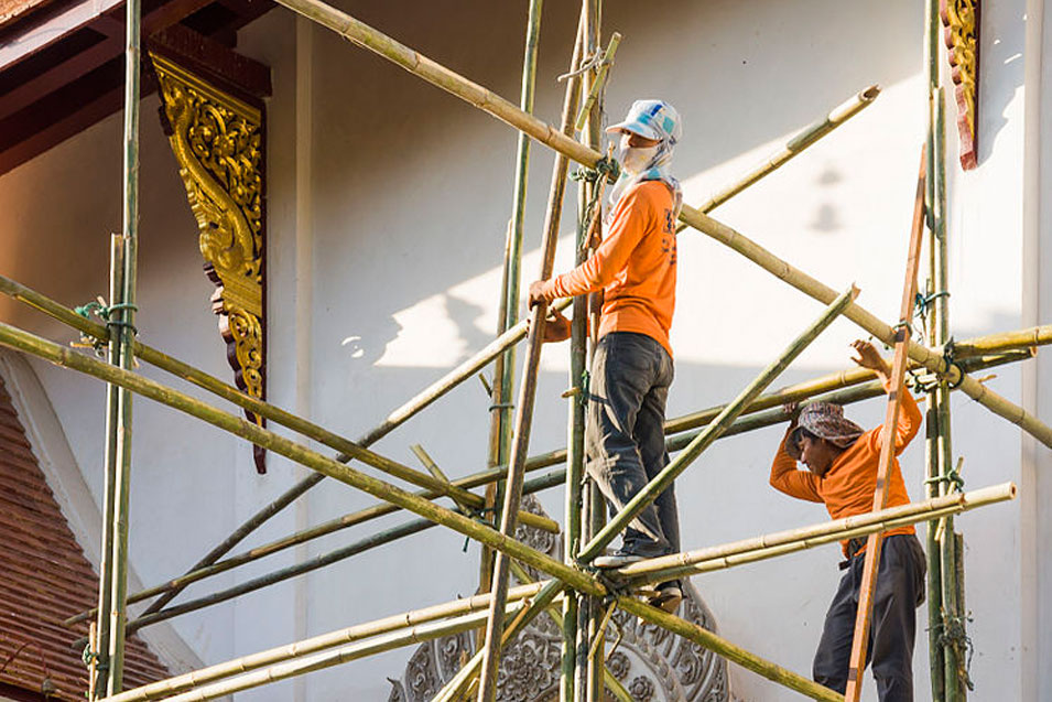 WE BUILD SCAFFOLDING FROM WOOD WITH OUR OWN HANDS